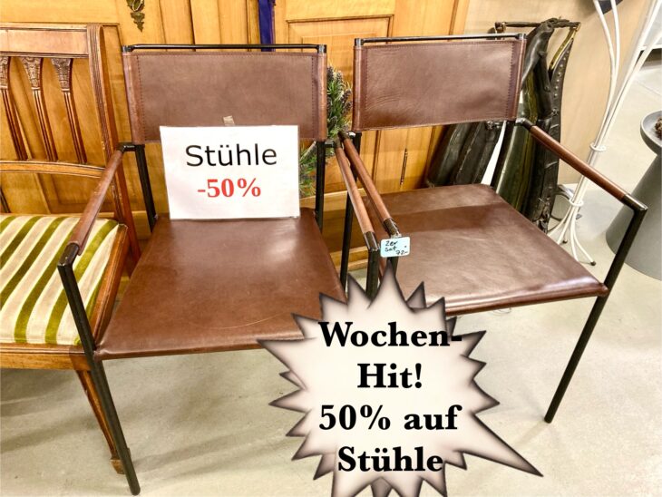 In dieser Woche sparen Sie 50% auf alle Stühle (ohne Sessel und Gartenmöbel) Grosse Auswahl zum kleinsten Preis - kommen Sie vorbei, wir freuen uns auf Ihren Besuch!