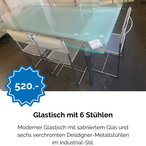 Glastisch mit 6 Stühlen